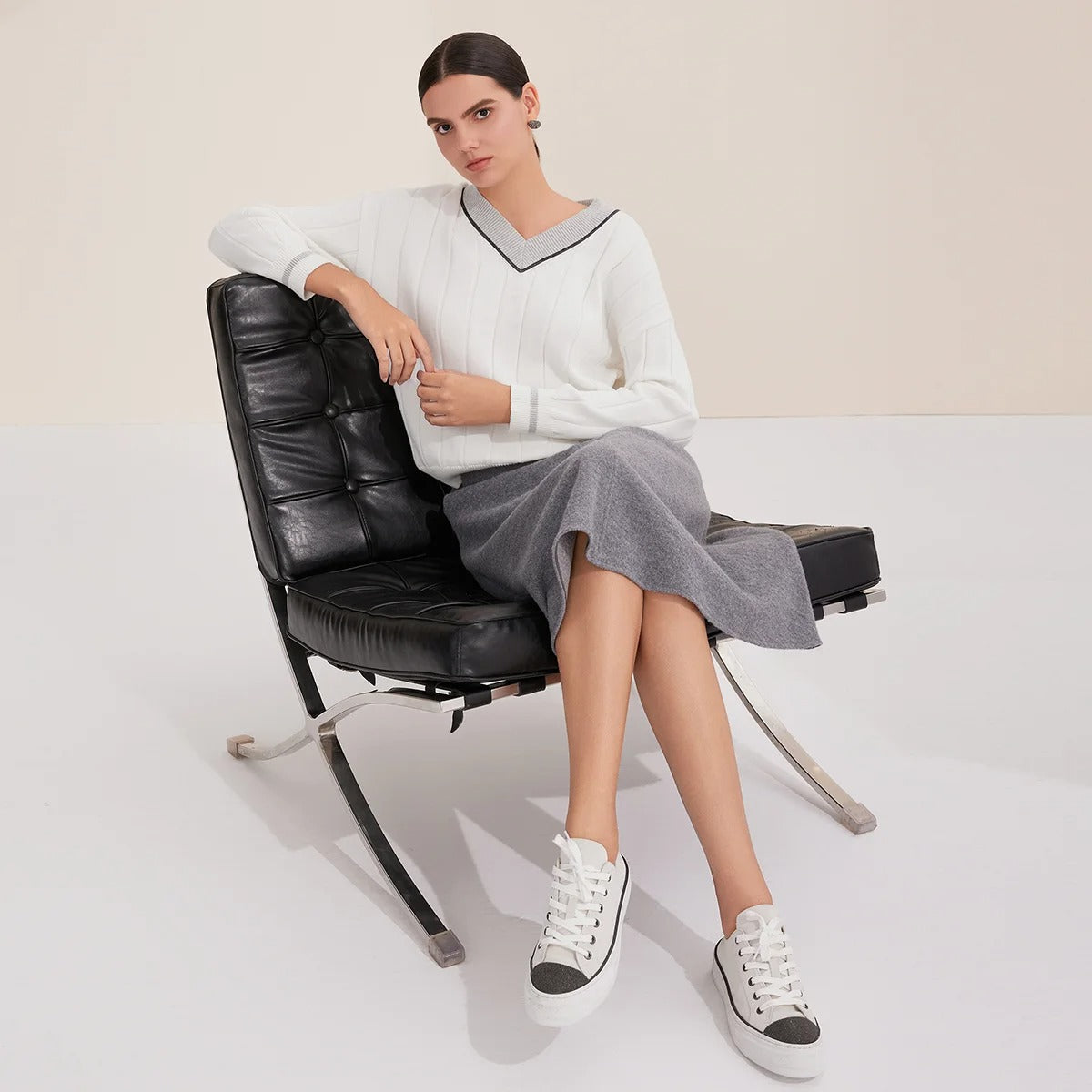 BY4521246 Women's V-Neck Long Sleeve Ribbed Sweater 100% Cotton Casual Knitted Pullover Fall Fashion 2025